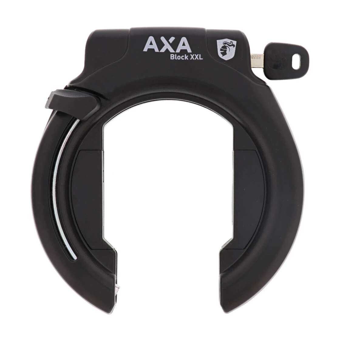 Das AXA Block XXL ist ein Rahmenschloss mit einer extra breiten Öffnung, damit dieses auch zu breiten Spritzschutzvorrichtungen oder Ballonreifen passt.