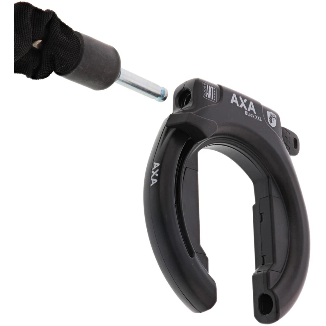 Das AXA Block XXL ist ein hochwertiges Rahmenschloss und bietet die Möglichkeit eine Plug-In-Kette in die Seite des Schlosses zu stecken und damit Ihr Fahrrad mit einem festen Objekt zu verbinden.