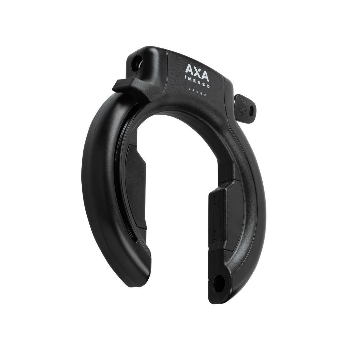Das AXA Imenso L lässt sich auf verschiedene Weise anbringen. Das Schloss wird standardmäßig an Befestigungslöchern im Rahmen des Fahrrads montiert. Sollten im Rahmen des Fahrrads keine Befestigungslöcher für die Montage eines Rahmenschlosses vorhanden sein, können Sie die AXA Flex Befestigungsleisten bestellen und verwenden.