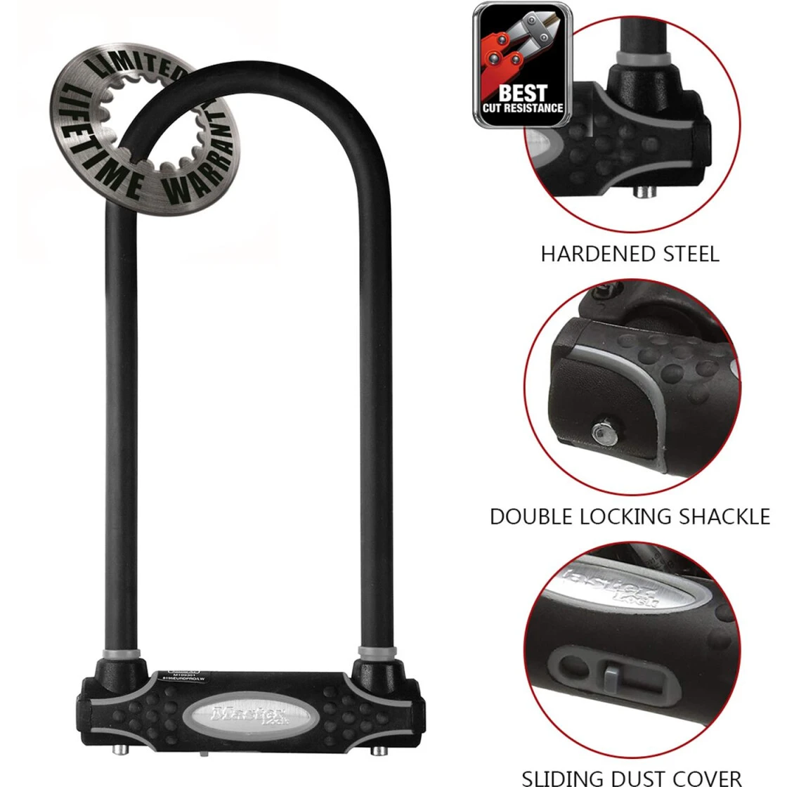 - Gehärteter Doppel-Schließbügel hält 2 Tonnen Zugkraft stand